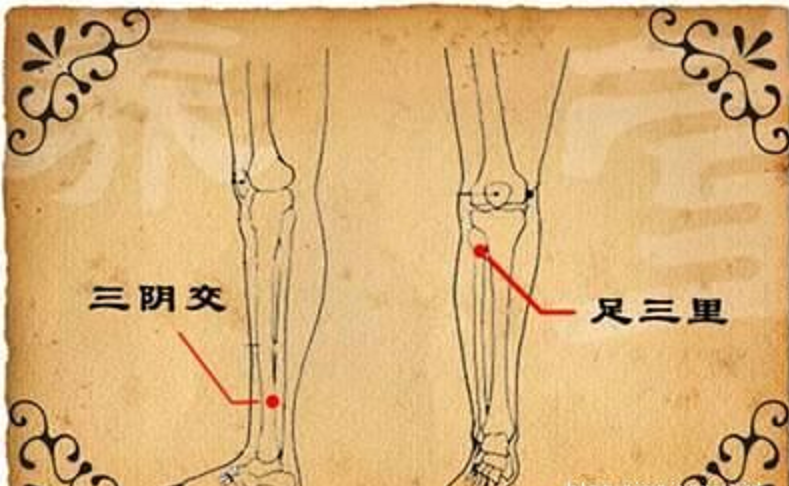 足三里健脾益胃,扶正培元,保健穴之一,为强壮保健要穴。三阴交为足太阴、厥阴、少阴三条经脉的交会穴,健脾和胃,补益肝肾,调经止带,对脾肝肾三经病变以及多种男、妇科病症都有广泛的治疗作用,是保养阴血的关键穴位。